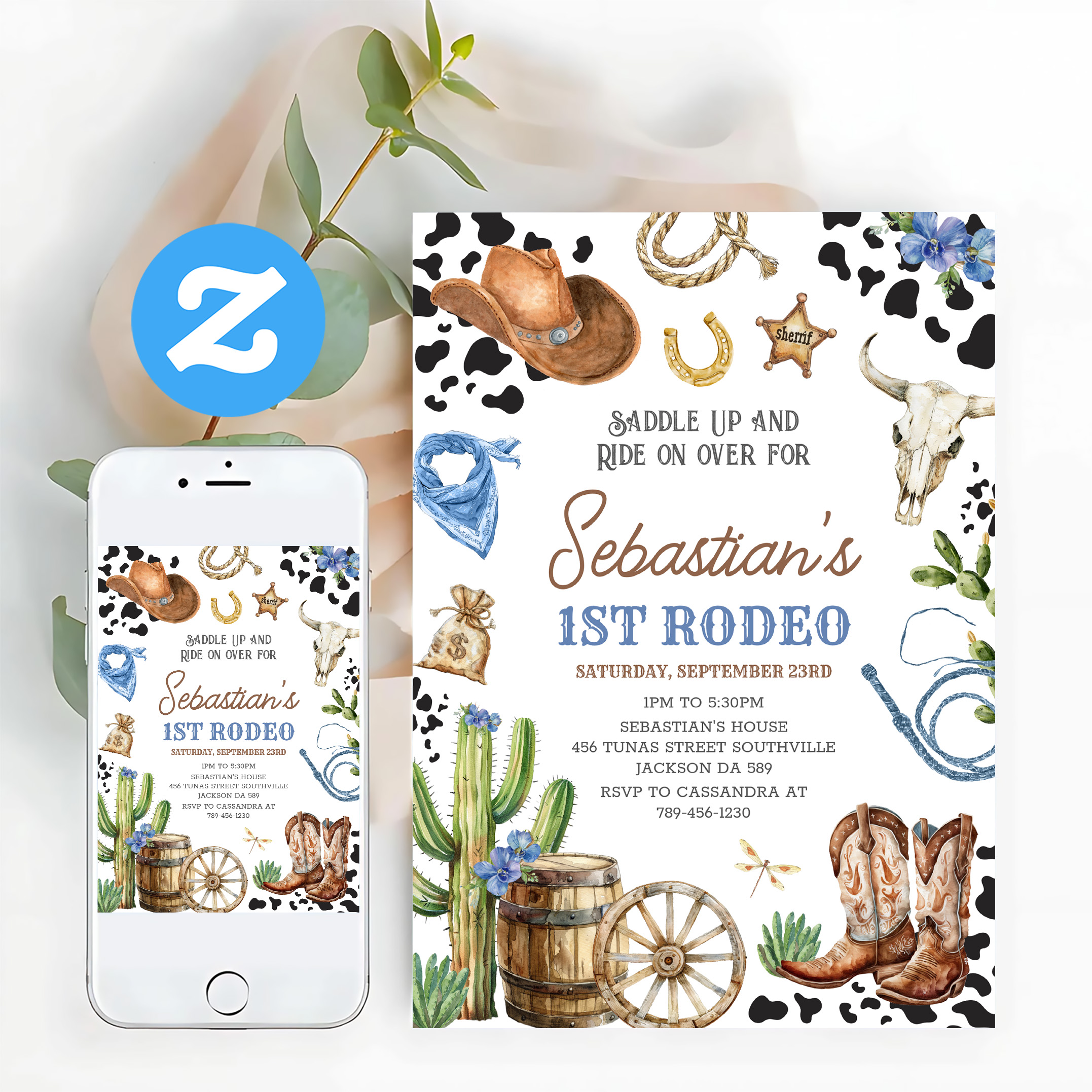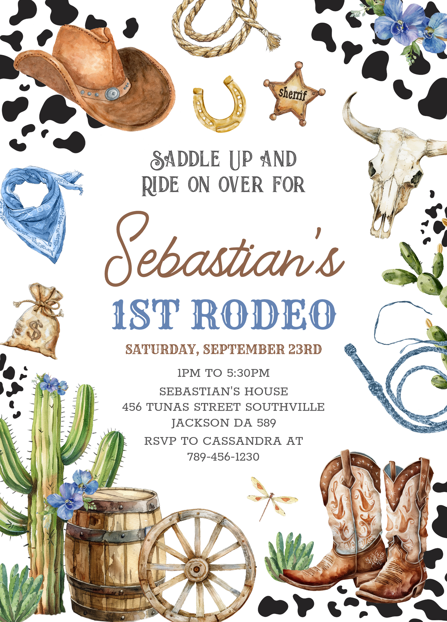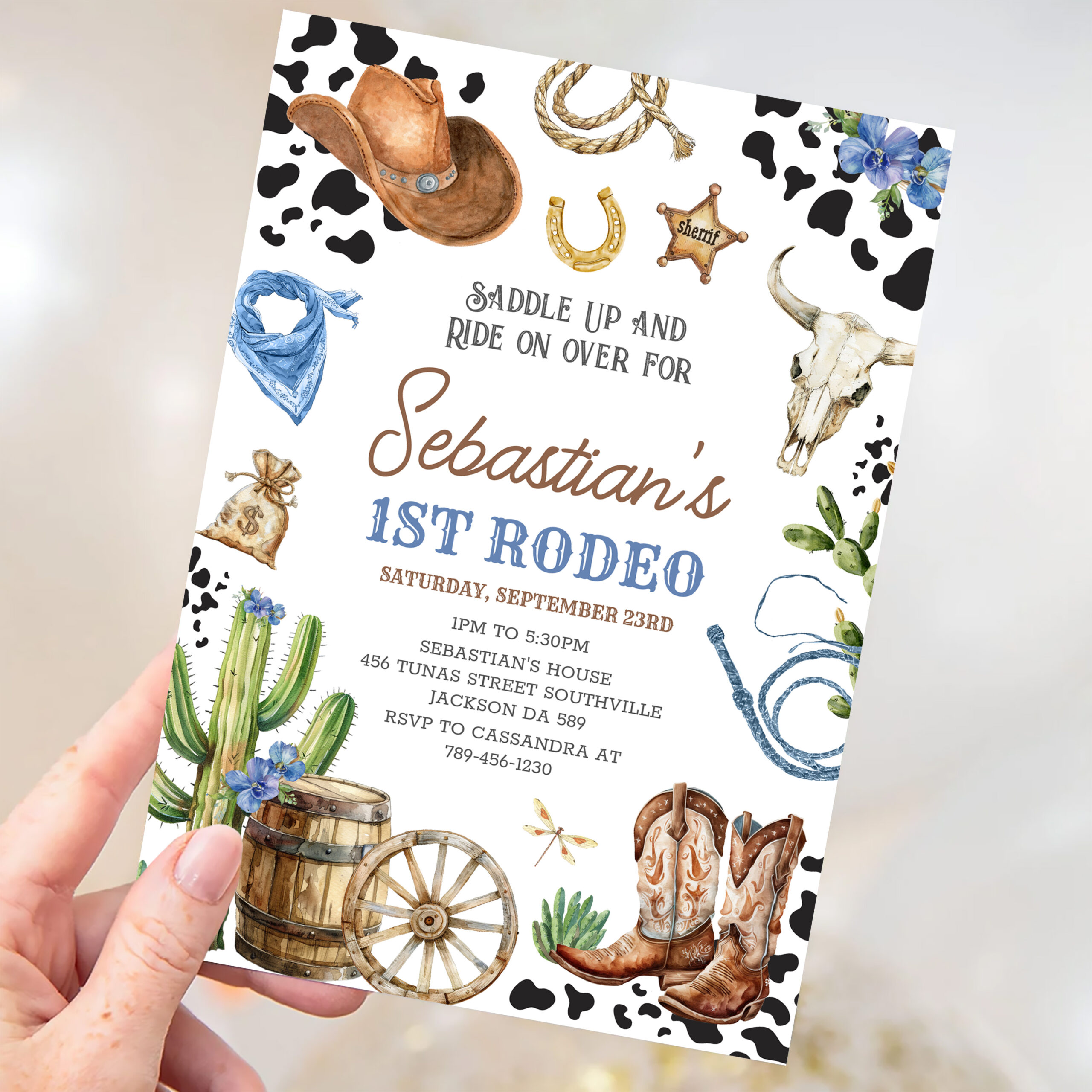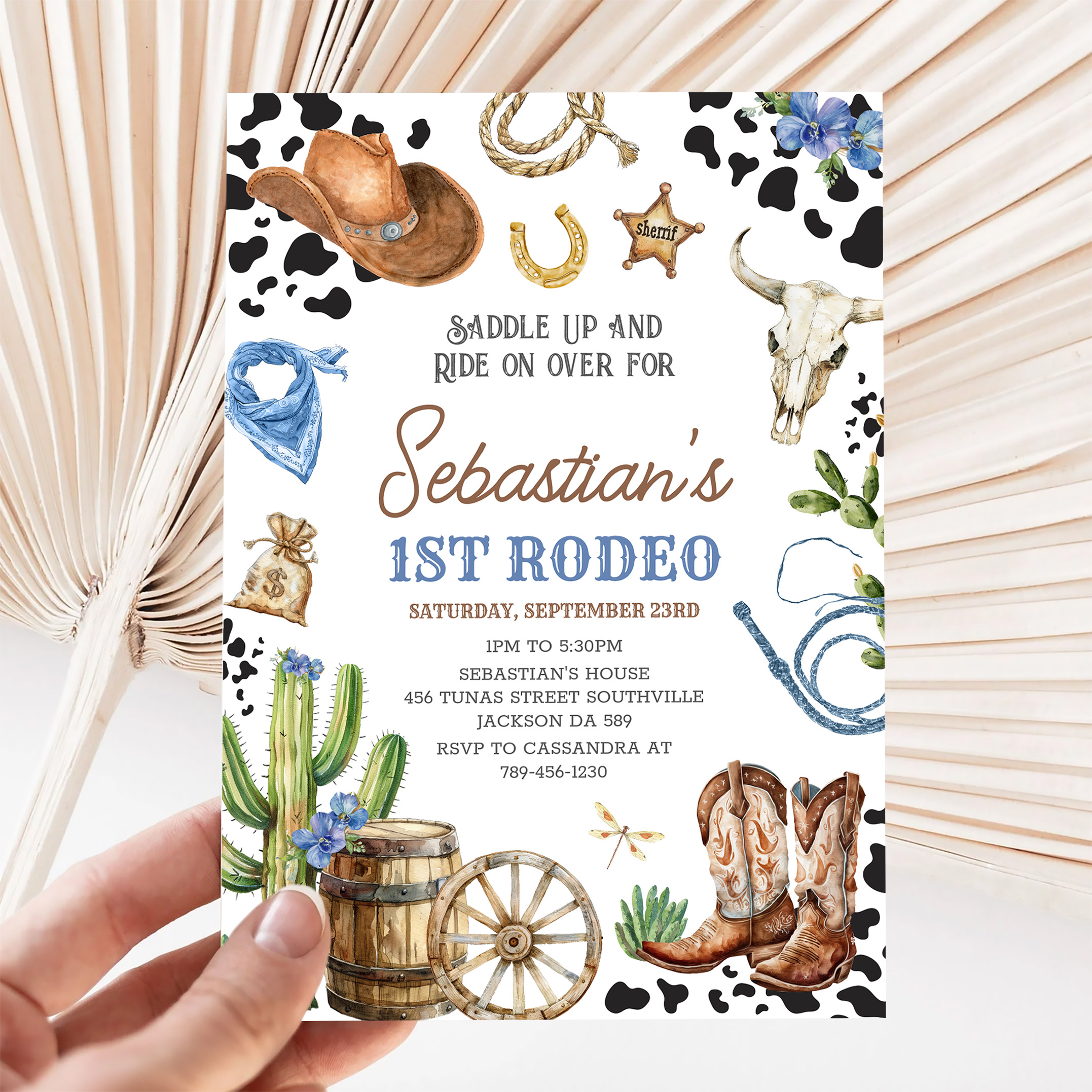 Wild West Cowboy First Rodeo Birthday Invitation